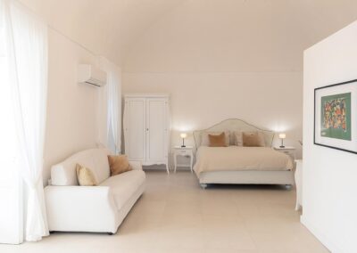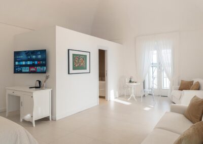 Un ambiente esclusivo, elegante e spazioso, pensato per chi desidera concedersi un soggiorno all’insegna del benessere. La Suite Deluxe offre un raffinato letto matrimoniale large, un’area lounge con divano e un balcone privato che regala momenti di relax in totale riservatezza.