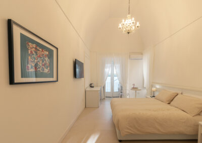 Il balcone privato regala una splendida vista sulla città e sulla maestosa Reggia di Caserta, offrendo un’esperienza unica già dal risveglio. All’interno, la camera è dotata di aria condizionata, TV a schermo piatto, scrivania e un pratico set per la preparazione di tè e caffè. Il bagno moderno, con doppio lavabo e doccia ampia, assicura relax e funzionalità.